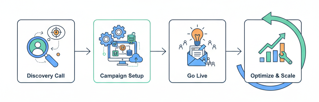 - Optimize & Scale – We tweak campaigns and help you grow.